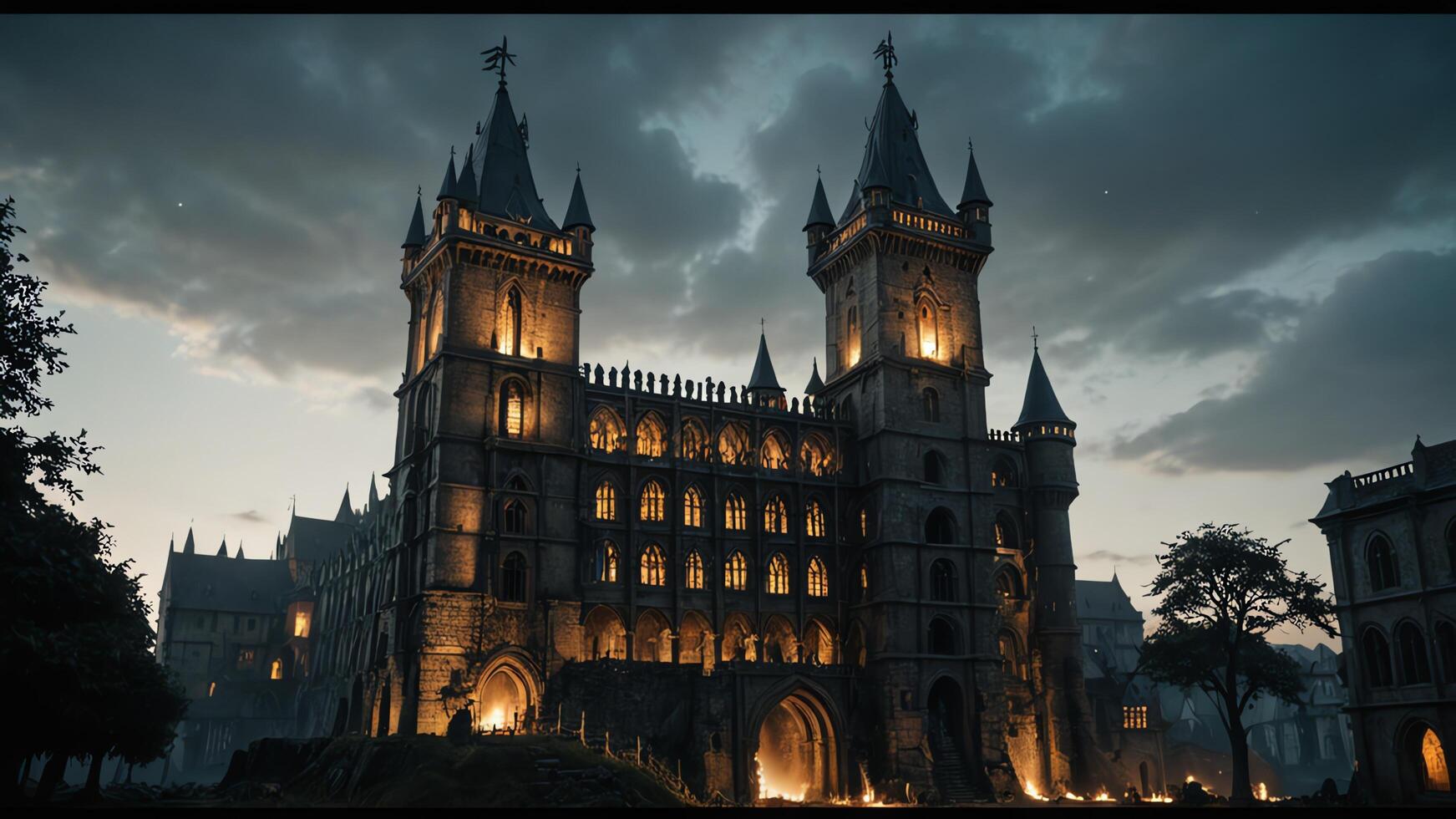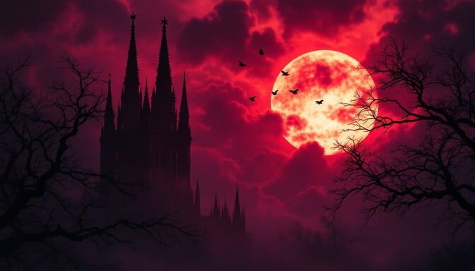 Draculaās towering castle looming like a curse